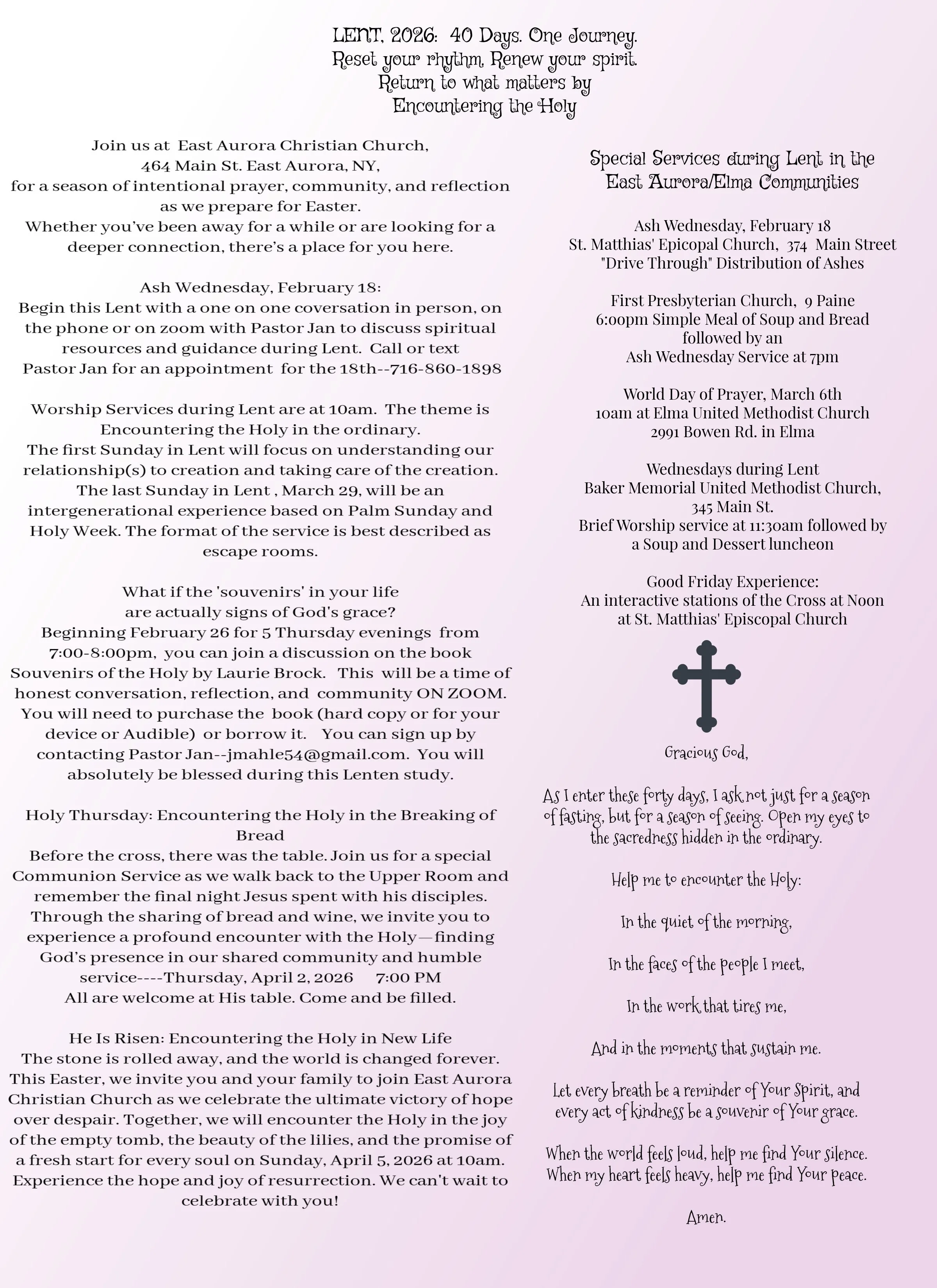 YOU ARE ALWAYS WELCOME AT EAST AURORA CHRISTIAN CHURCH 464 MAIN STREET , EAST AURORA, NY 14052!